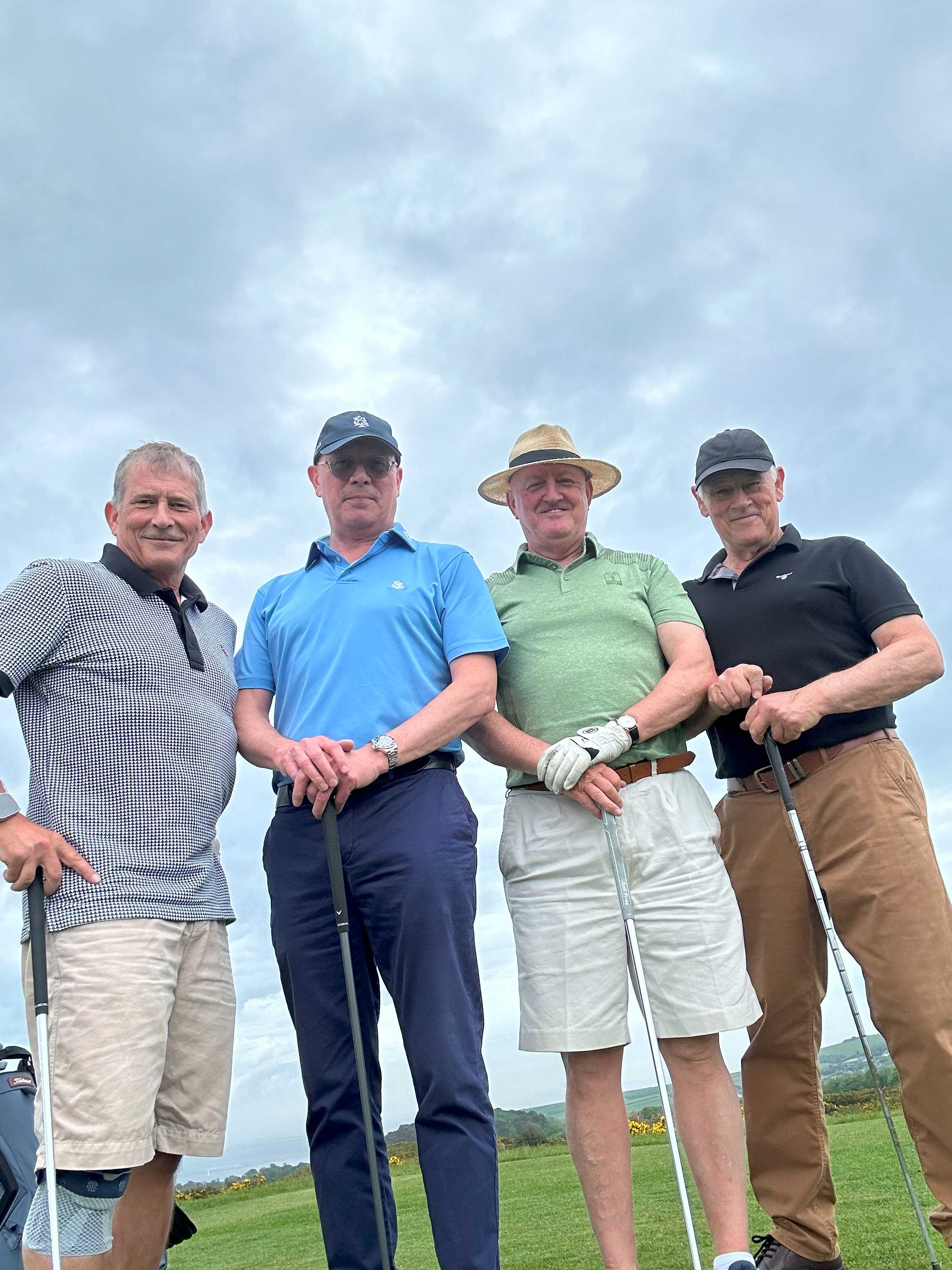 My brother Roger and his wife Terrie, live in Wareham, which is close by, so I drove down a day early to visit them first. Before the walking holiday started, the few golfing members of the group, also have a tradition of meeting up for a round of golf before the walk. This time there were only 3 willing golfers, so Roger agreed to make up the four. We played at the beautiful, Isle of Purbeck Golf Club, which has wonderful views down to the sea.