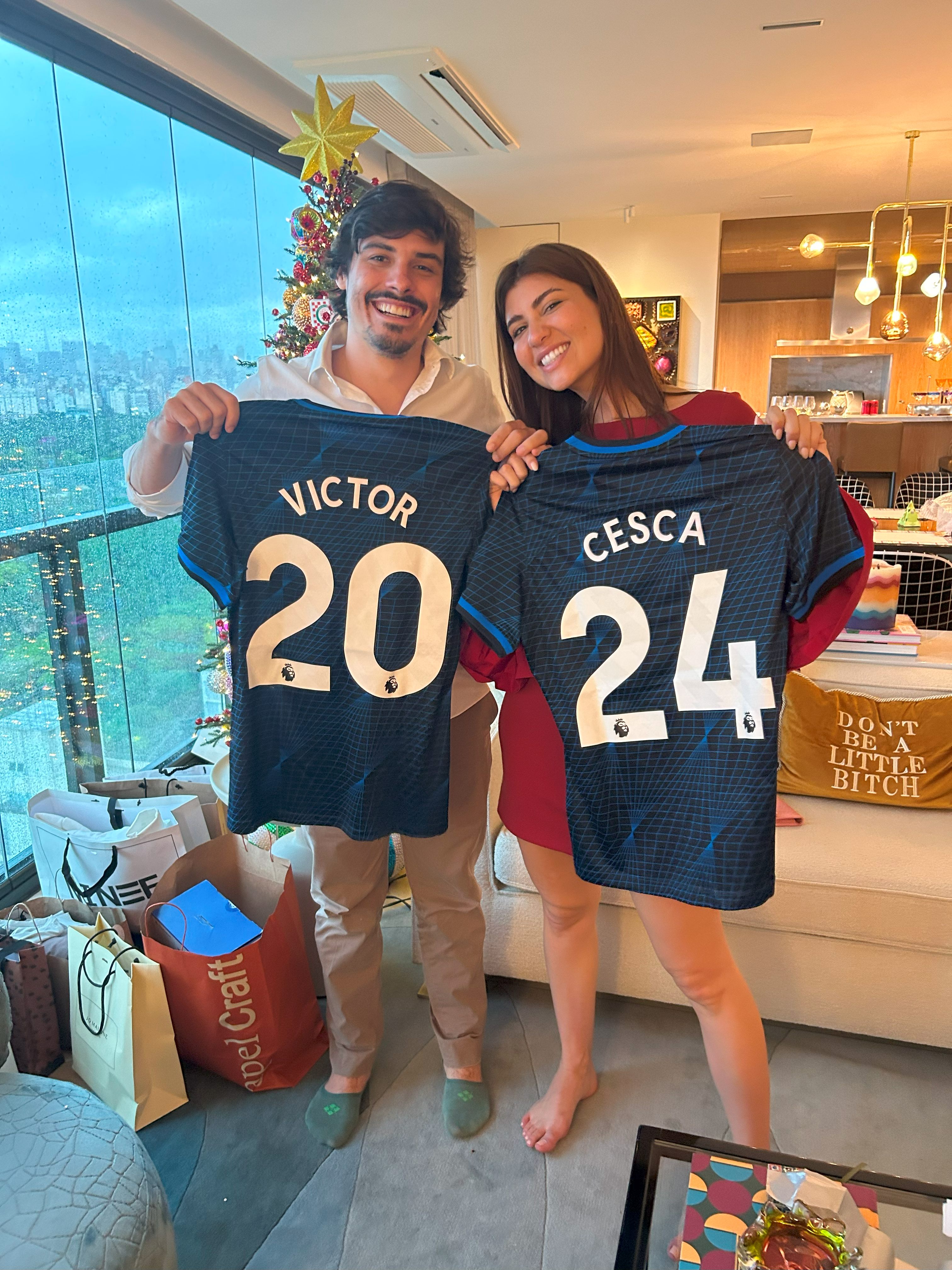 I brought along a surprise gift from Harrison, Chelsea football club jerseys, which Victor and Cesca absolutely loved: